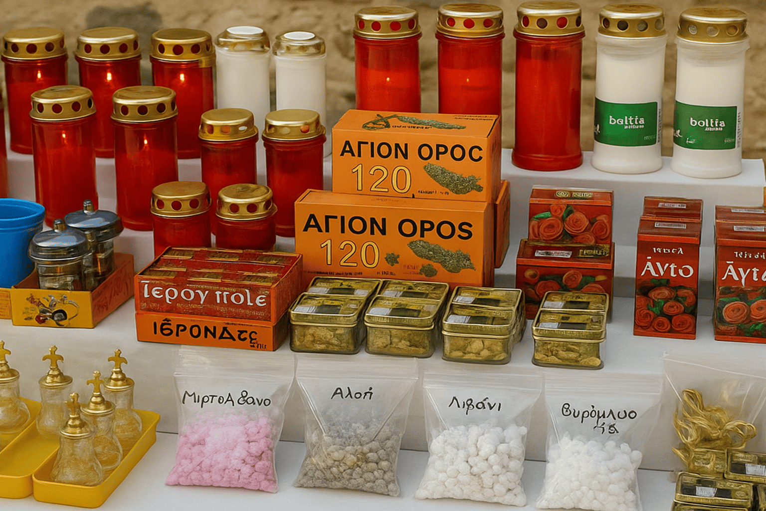Κεριά, λιβάνια και βασικά εκκλησιαστικά είδη για το σπίτι και τον ναό, επιλεγμένα με σεβασμό στην παράδοση και την πίστη.