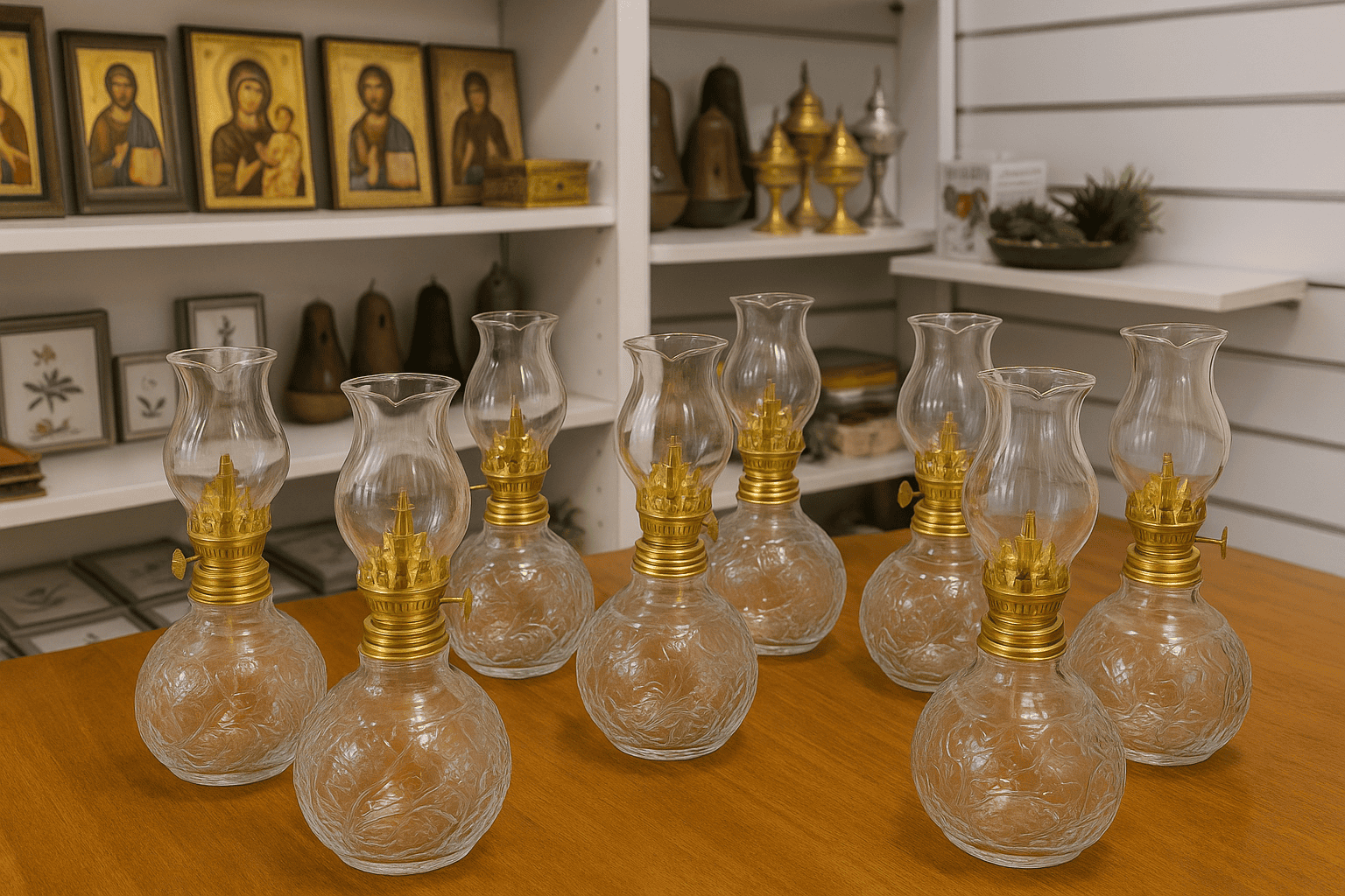 Καντήλια, εικόνες και εκκλησιαστικά αντικείμενα για προσωπική χρήση ή προσφορά, κατάλληλα για κάθε περίσταση.